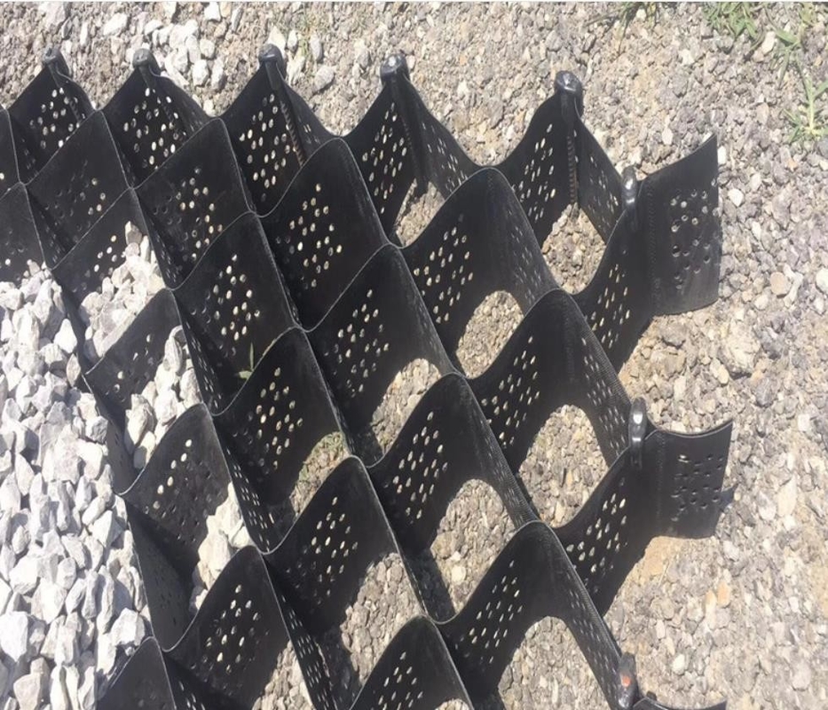 Geocell được làm bằng HDPE hàn siêu âm và có thể được mở rộng để tạo thành cấu trúc tổ ong.